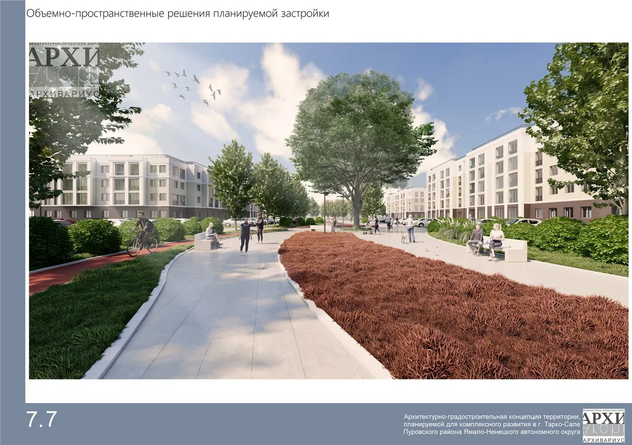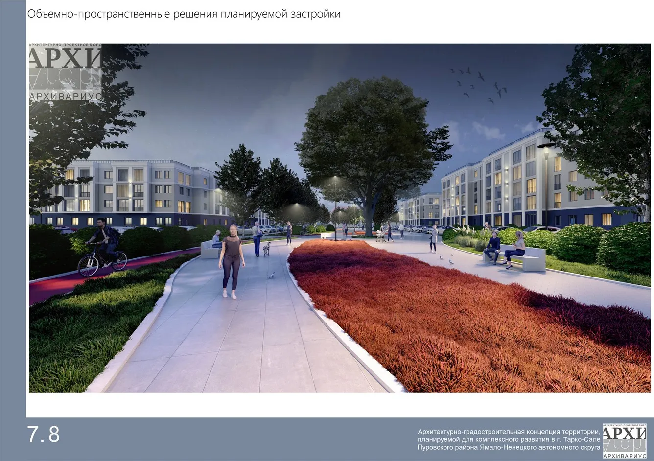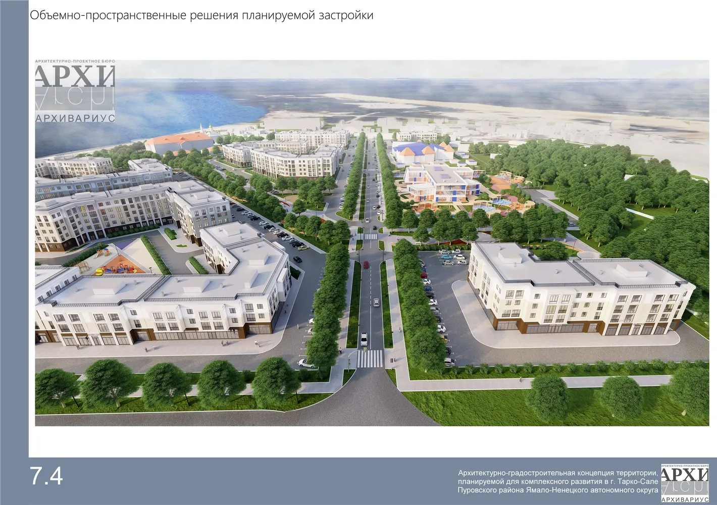 Архитектурно-градостроительная концепция территории, планируемой для комплексного развития в г. Тарко-Сале Пуровского района Ямало-Ненецкого автономного округа, была выполнена в 2023 г.