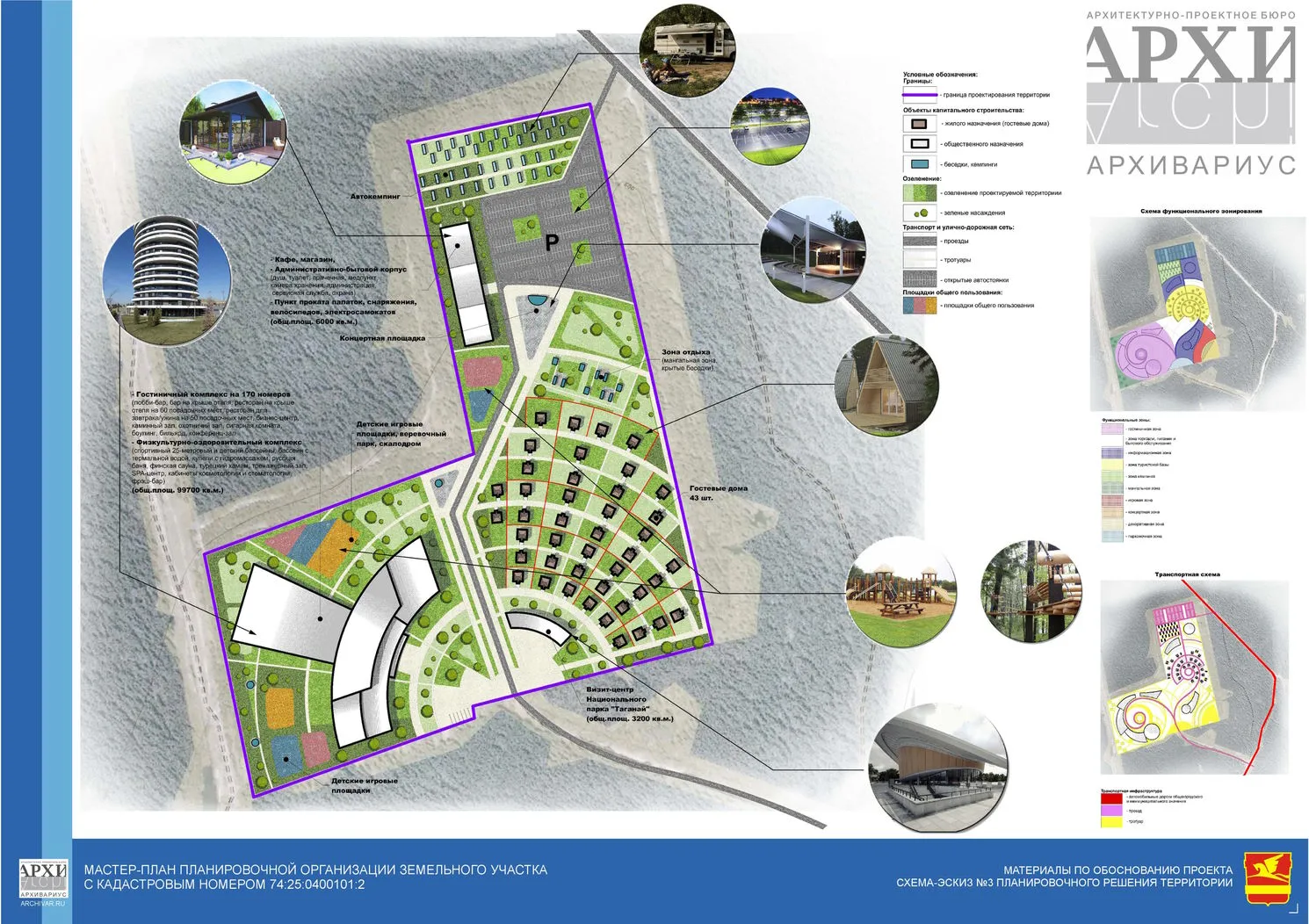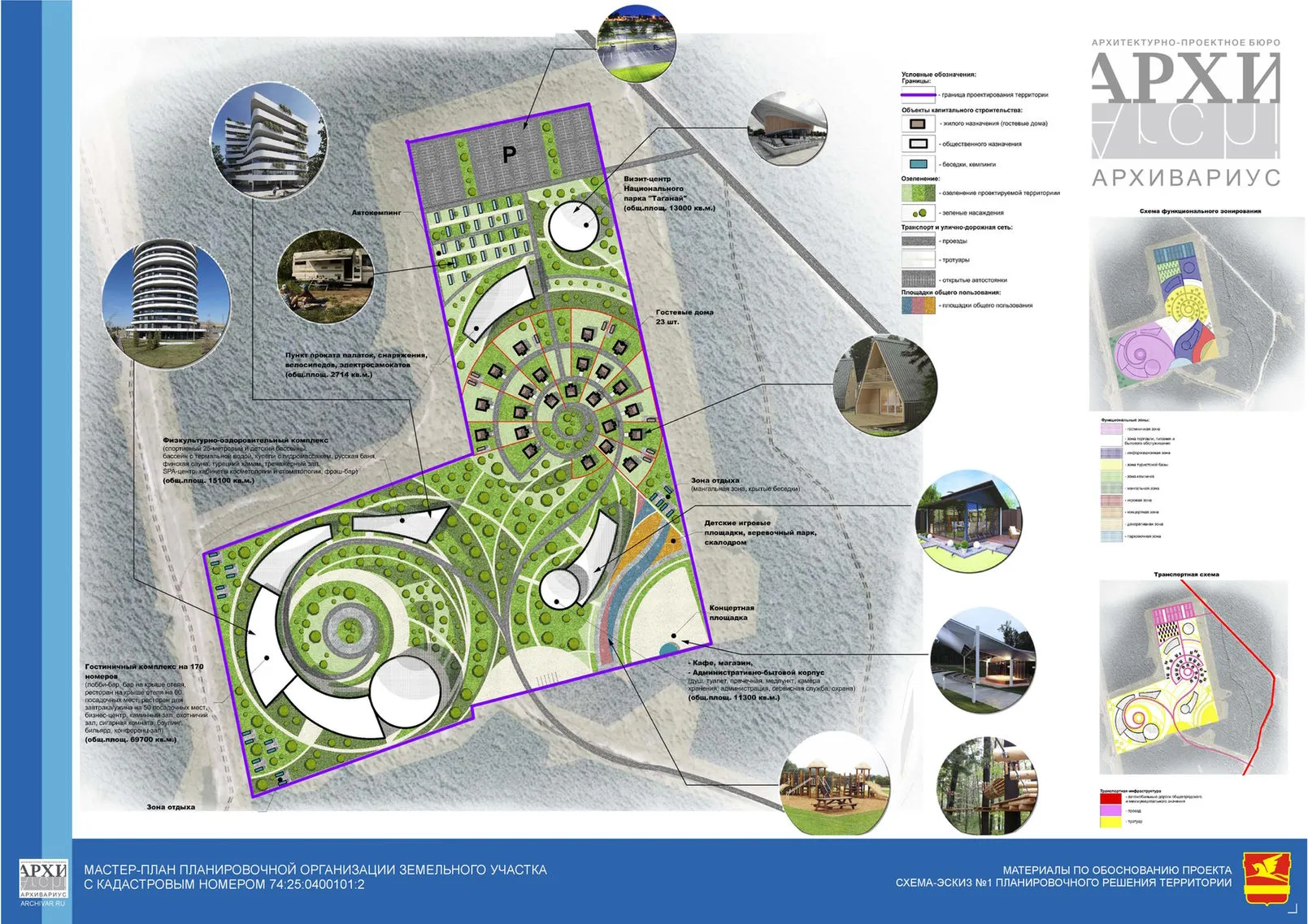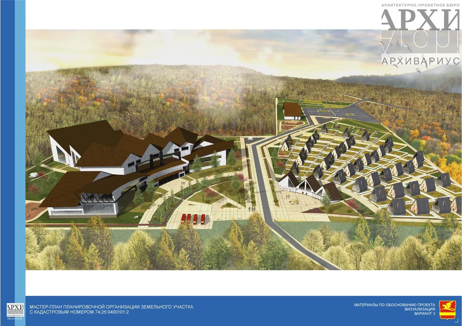 Мастер-план планировочной организации земельного участка с кадастровым номером 74:25:0400101:2 национального парка Таганай в г. Златоуст Челябинской области был выполнен в 2021 г.