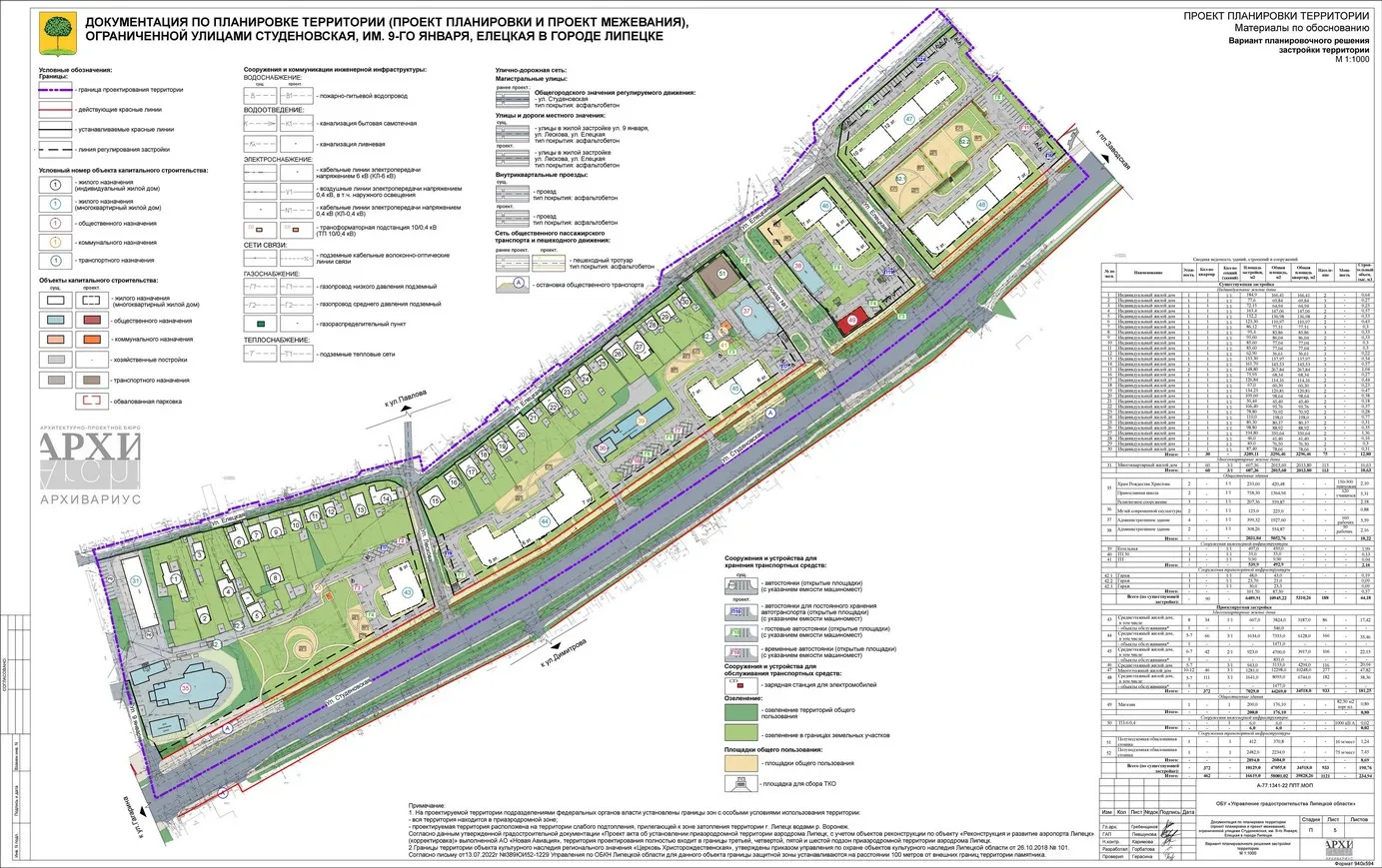 Документация по планировке территории (проект планировки и проект межевания), ограниченной улицами Студеновская, им. 9-го Января, Елецкая в городе Липецке