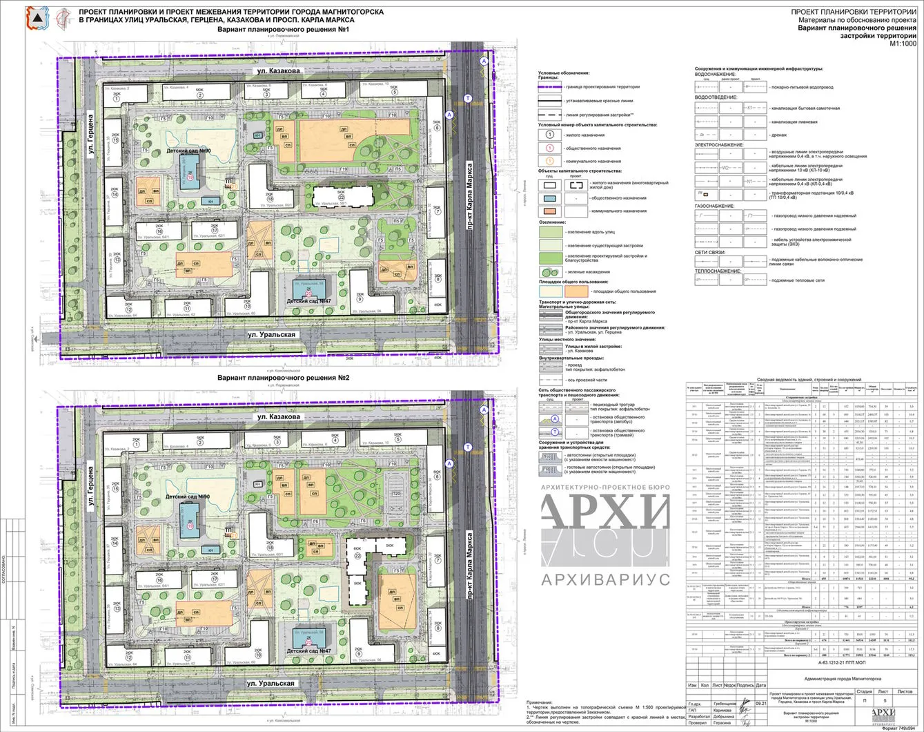 - Проект планировки и проект межевания территории города Магнитогорска в границах улиц Уральская, Герцена, Казакова и просп. Карла Маркса.