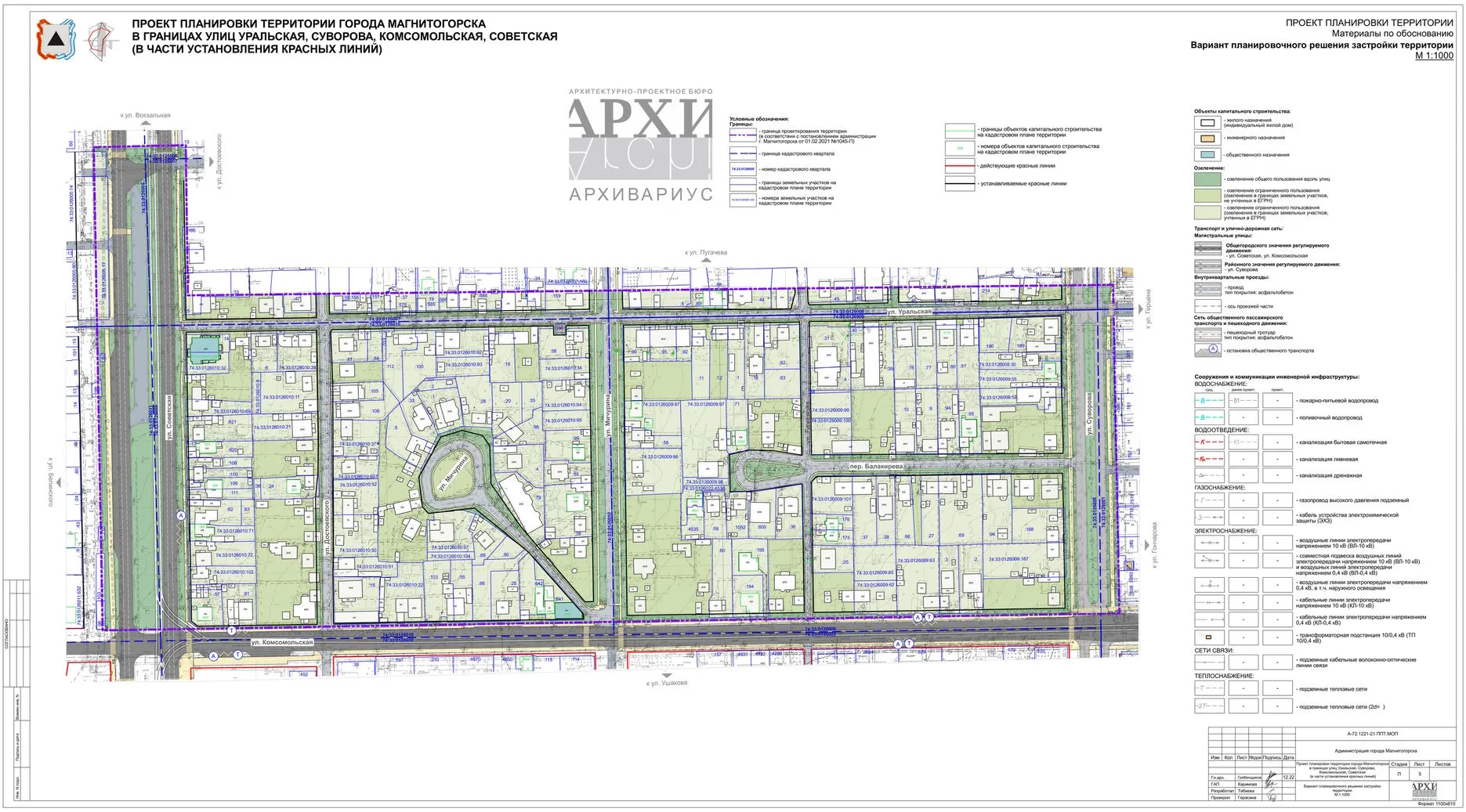 - Проект планировки территории города Магнитогорска в границах улиц Уральская, Суворова, Комсомольская, Советская (в части установления красных линий).