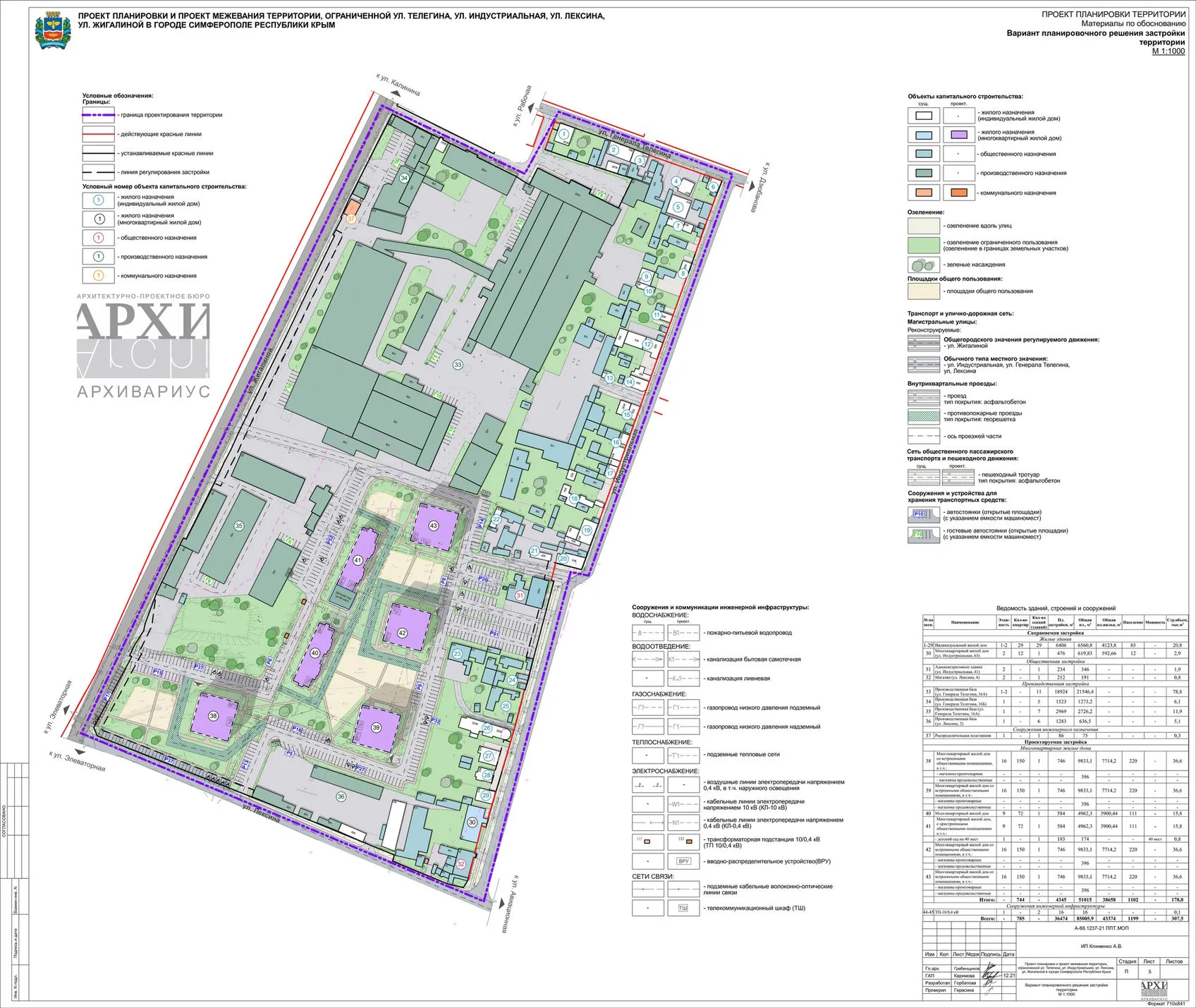 - Проект планировки и проект межевания территории, ограниченной ул. Телегина, ул. Индустриальная, ул. Лексина, ул. Жигалиной в городе Симферополе.