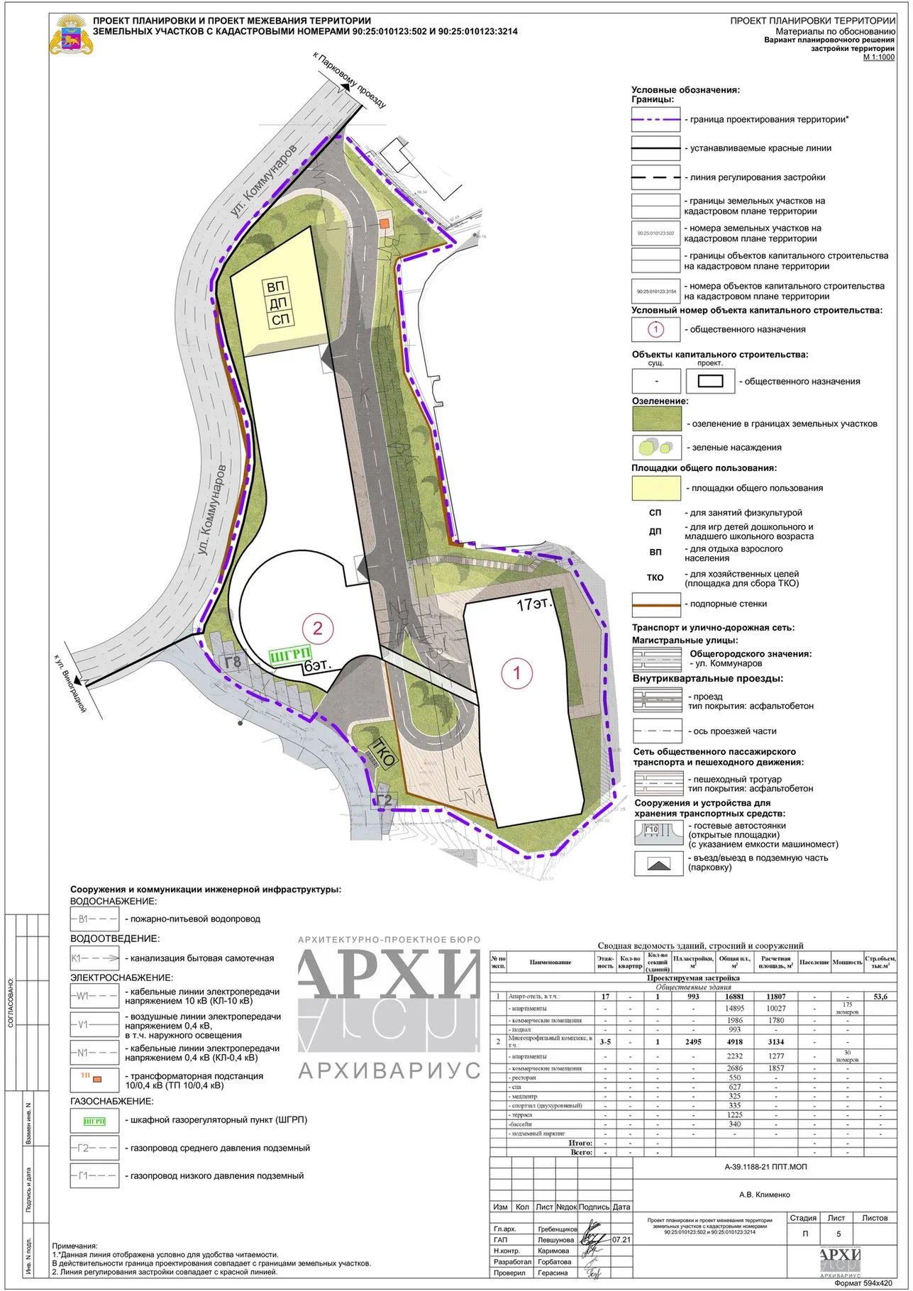 - Проект планировки и проект межевания территории земельных участков с кадастровыми номерами 90:25:010123:502 и 90:25:010123:3214.