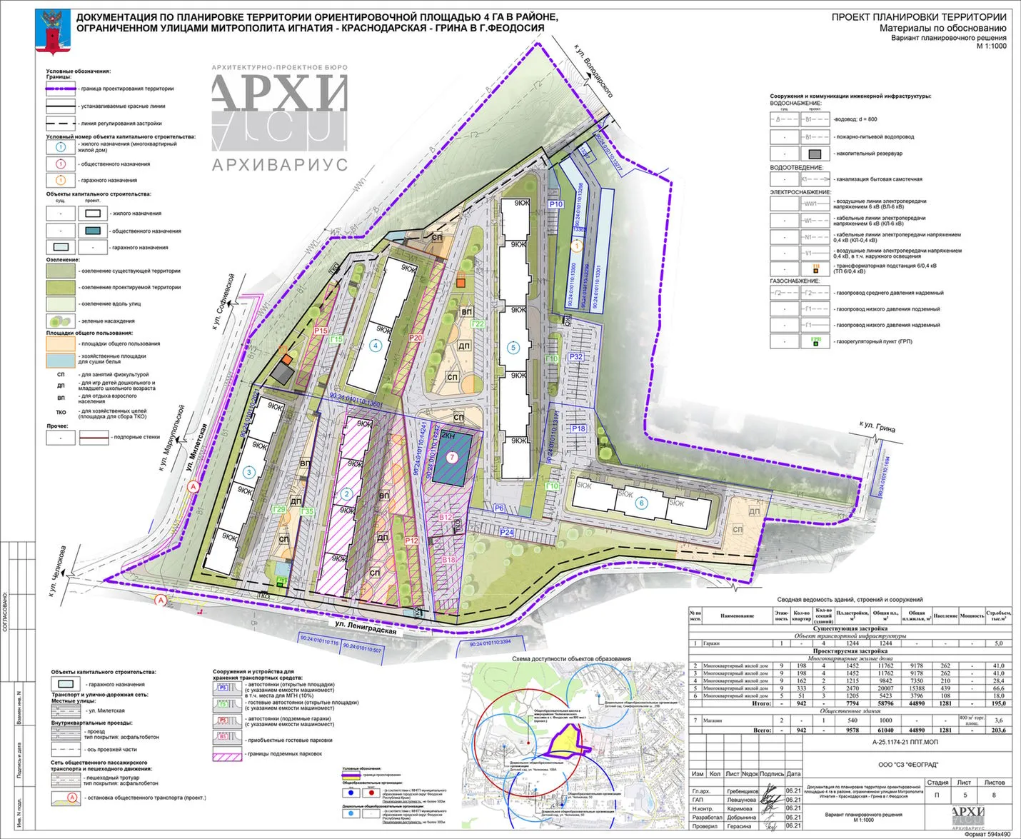 - Документация по планировке территории ориентировочной площадью 4 Га в районе, ограниченном улицами Митрополита Игнатия - Краснодарская - Грина в г. Феодосия.