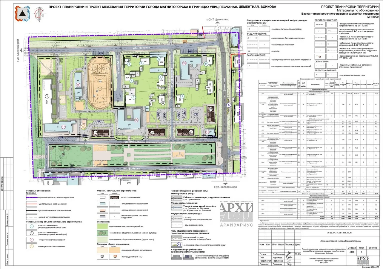 Проект планировки и проект межевания территории города Магнитогорска в границах улиц Песчаная, Цементная, Войкова
