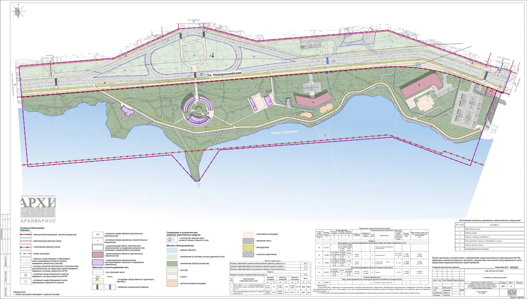 - Документация по планировке территории (проект планировки территории с проектом межевания территории) в границах ул. Новороссийской, западной границы территориальной зоны 03 17 02 В.2.2, берега оз. Смолино, восточной границы территориальной зоны 03 07 05 Б.1 в Ленинском районе города Челябинска Челябинской области.