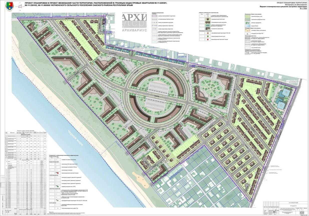 Проект планировки и проект межевания части территории, расположенной в границах кадастровых кварталов 90:11:220301, 90:11:220103, 90:11:000000 Уютненского сельского поселения Сакского района Республики Крым были выполнены в 2022 г.