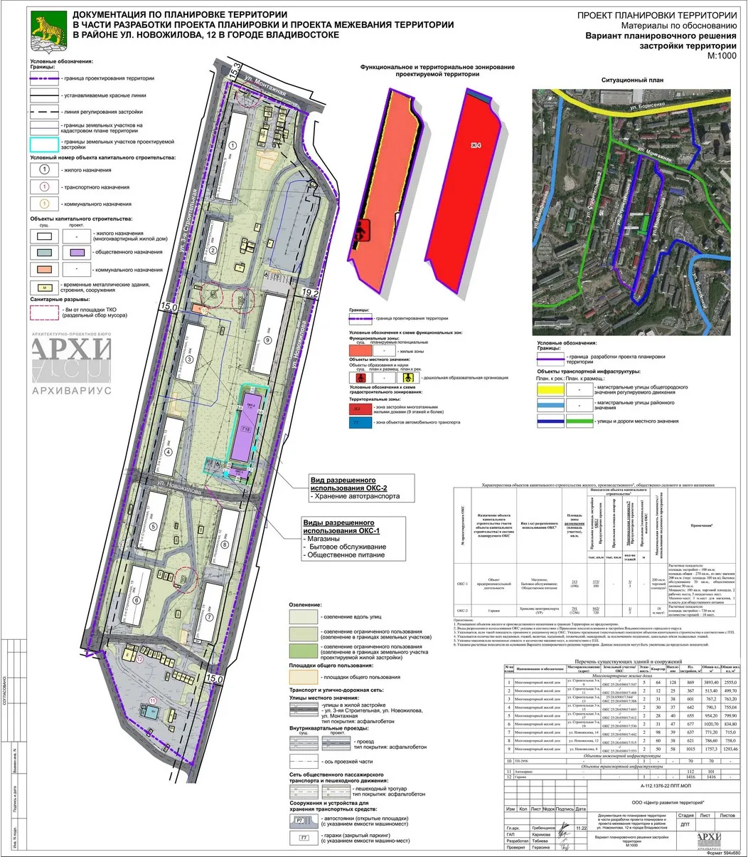 - Документация по планировке территории в части разработки проекта планировки и проекта межевания территории в районе ул. Новожилова, 12 в городе Владивостоке Приморского края.