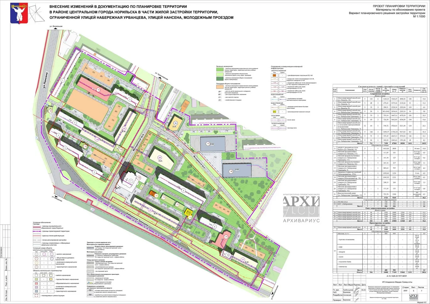 Документация по планировке территории и проект межевания территории в городском округе город Норильск в части жилой застройки территории, ограниченной улицей Орджоникидзе, Ленинский проспект, улицей Дзержинского, улицей Комсомольская