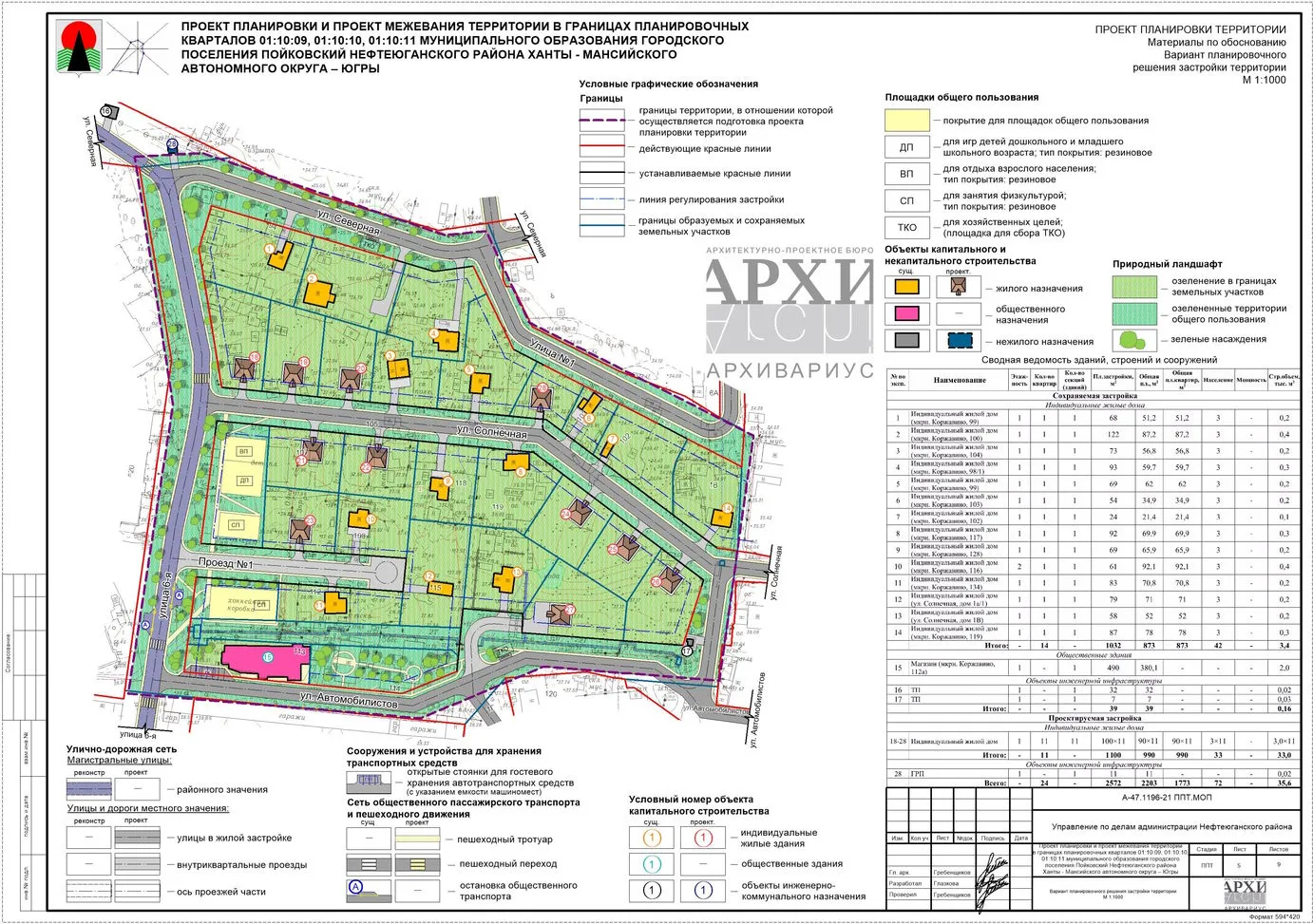 - Проект планировки и проект межевания территории в границах планировочных кварталов 01:10:09, 01:10:10, 01:10:11 Муниципального образования городского поселения Пойковский Нефтеюганского района Ханты-Мансийского автономного округа - Югры.