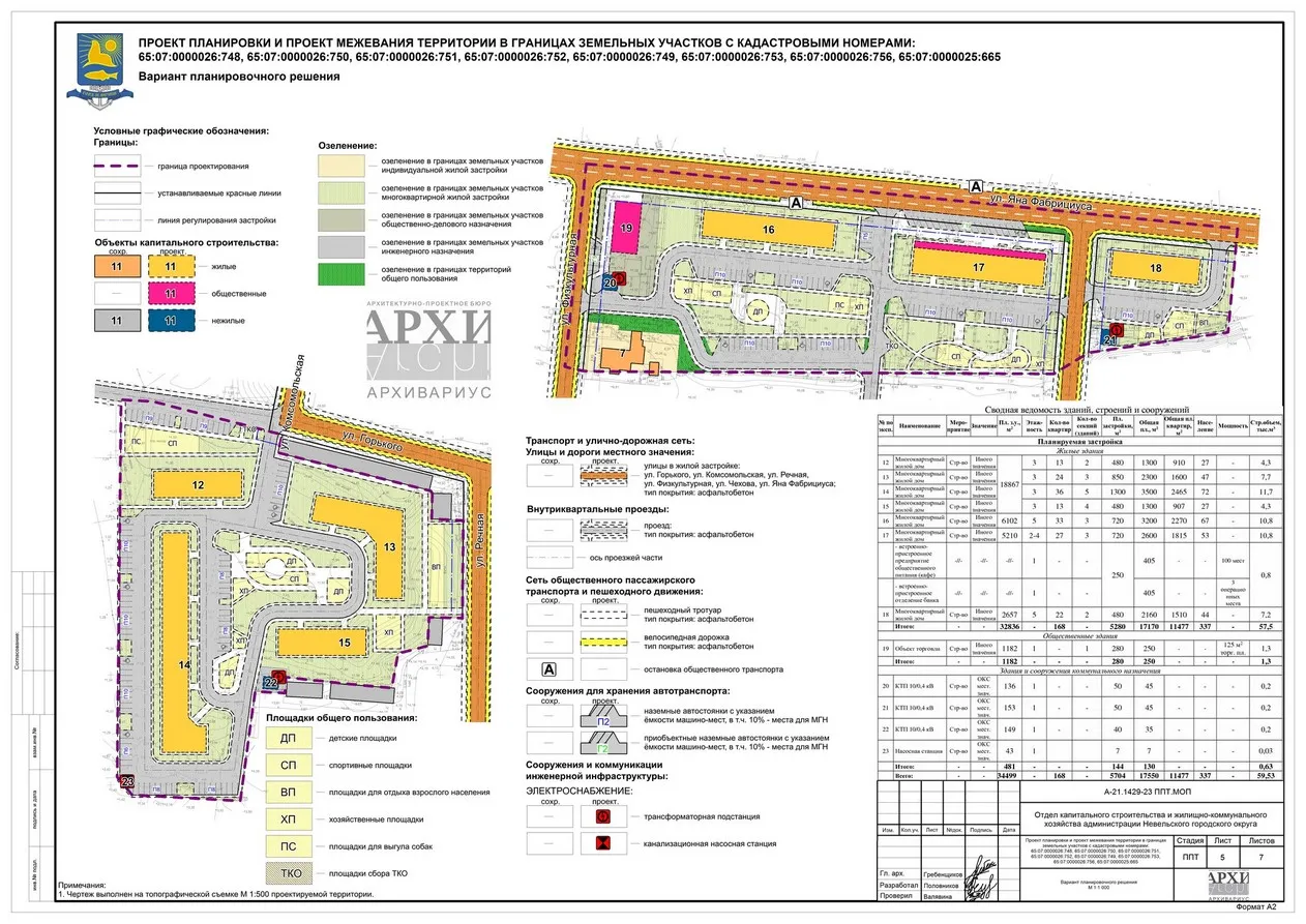 Проект планировки и проект межевания территории в границах земельных участков с кадастровыми номерами: 65:07:0000026:748, 65:07:0000026:750, 65:07:0000026:751, 65:07:0000026:752, 65:07:0000026:749, 65:07:0000026:753, 65:07:0000026:756, 65:07:0000025:665 Невельского городского округа Сахалинской области были выполнены в 2023 г. В составе работ выполнялись инженерно-геодезические изыскания.