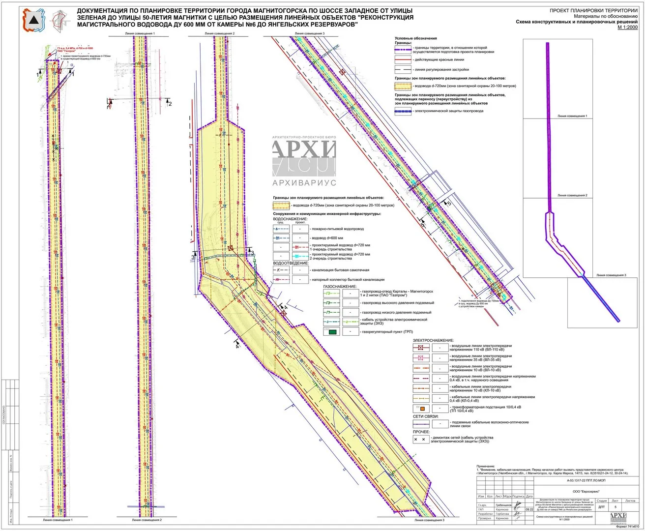 Документация по планировке территории города Магнитогорска по шоссе Западное от улицы Зеленая до улицы 50-летия Магнитки с целью размещения линейных объектов "Реконструкция магистрального водовода ДУ 600 мм от камеры №6 до Янгельских резервуаров